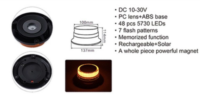 Стробоскоп-мигалка помаранчева на дах бездротова автомобіля на акумуляторі з сонячною панеллю